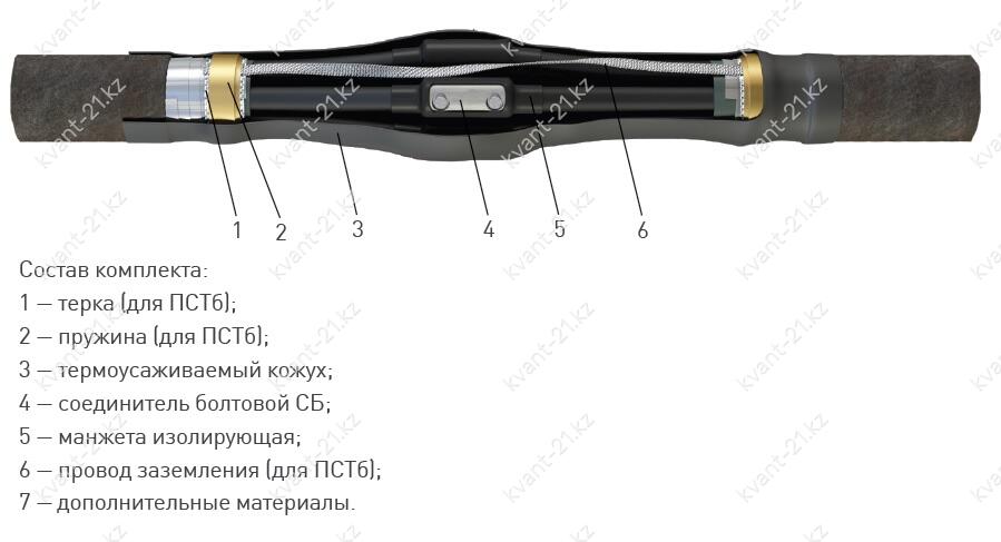 Термоусаживаемая соединительная кабельная муфта 3 ПСТ-1 (150-240мм2) ЗЭТАРУС предназначена для соединения 3-жильного силового кабеля с пластмассовой и ЭПР изоляцией без брони, сечением 150-240мм2 на напряжение до 1 кВ.