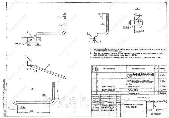 Крепление изолятора КИ-2, КИ-2М выпускается в соответствии с типовым проектом Л57-97 (Л57-97.10.01).