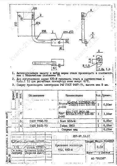 Крепление изолятора КИЗ, КИЗ-М выпускается в соответствии с типовым проектом Л57-97 (Л57-97.13.01).