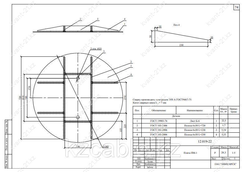 Плита ПМ-1 выпускается в соответствии с типовым проектом 12.019 (12.019-22).