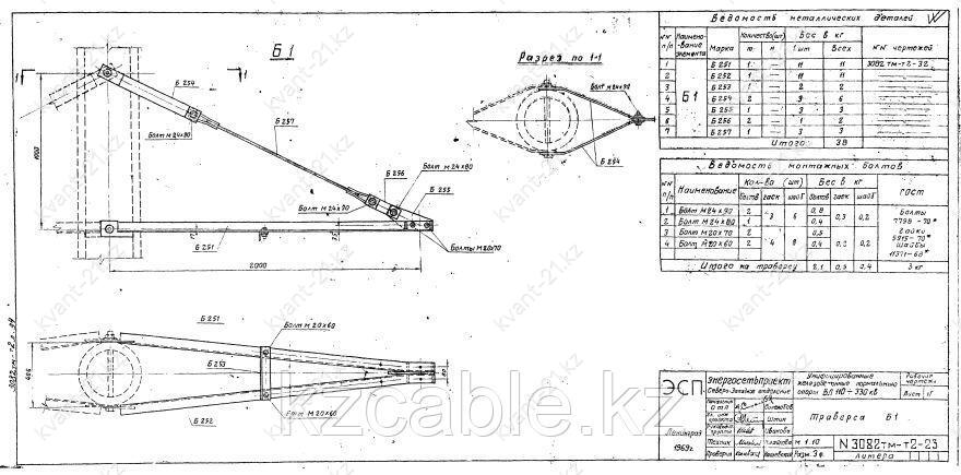 Траверса Б-1 выпускается в соответствии с типовым проектом 407-4-20/75 (3082тм-т2-23)
