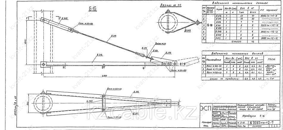 Траверса Б-16 выпускается в соответствии с типовым проектом 407-4-25/75 (3082тм-т2-7).