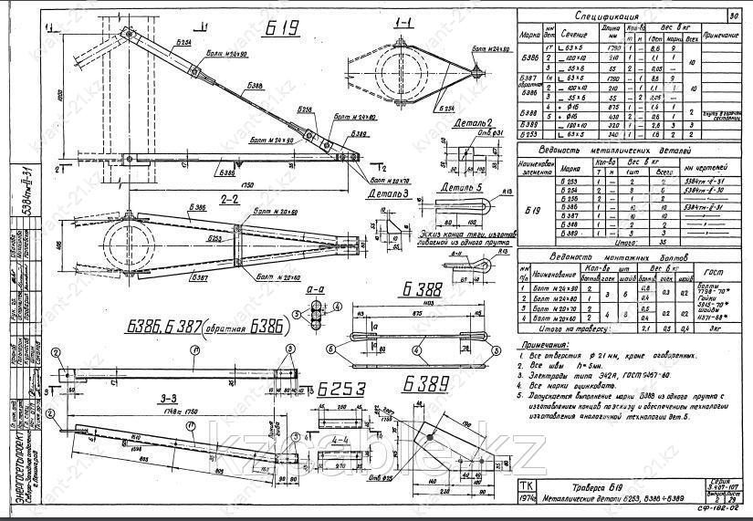 Траверса Б-19 выпускается в соответствии с типовым проектом 3.407-107 (5384тм-II-31)