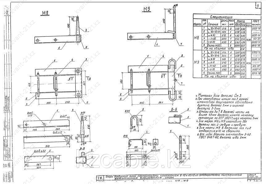 Траверса М-9 выпускается в соответствии с типовым проектом 3.407-101 арх. №04950.