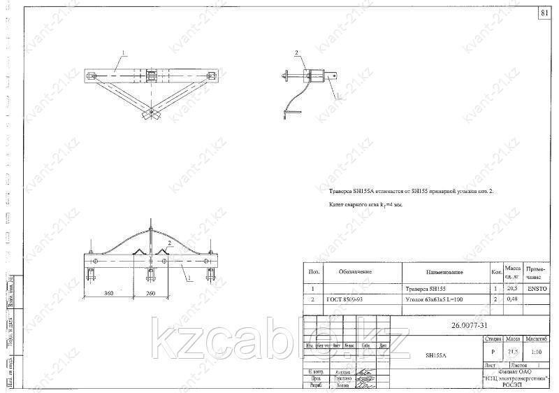 Траверса SH-155А выпускается в соответствии с типовым проектом 26.0077 (26.0077-31).