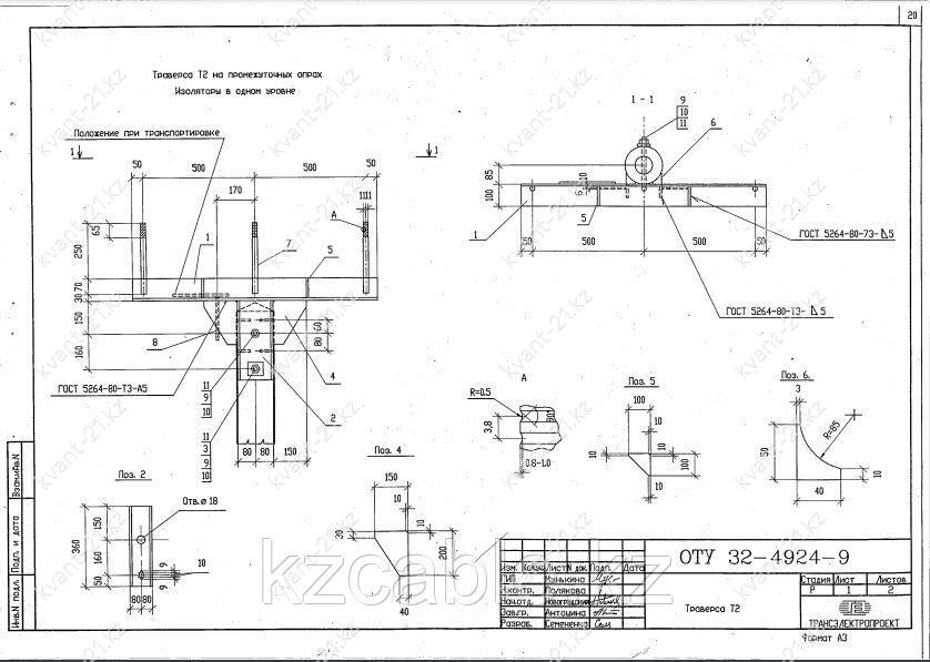 Траверса Т-2 выпускается в соответствии с типовым проектом ОТУ 32-4924 (ОТУ 32-4924-9).