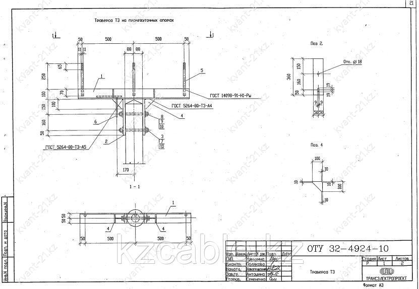 Траверса Т-3 выпускается в соответствии с типовым проектом ОТУ 32-4924 (ОТУ 32-4924-10).