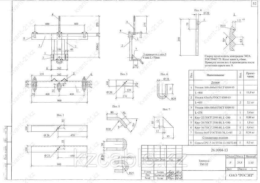 Траверса ТМ-102 выпускается в соответствии с типовым проектом 26.0004 (26.0004-13).