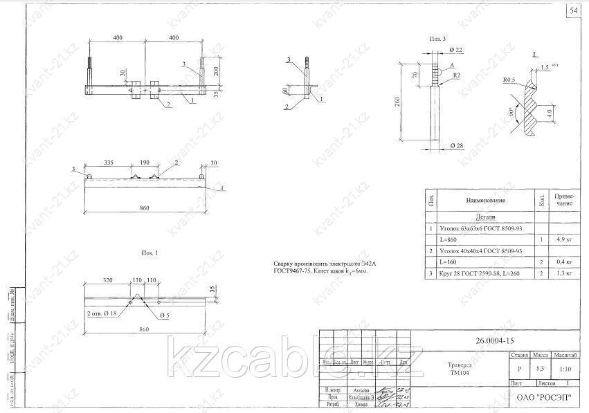 Траверса ТМ-104 выпускается в соответствии с типовым проектом 26.0004 (26.0004-15).