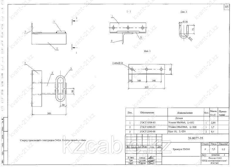 Траверса ТМ-161 выпускается в соответствии с типовым проектом 26.0077 (26.0077-35).