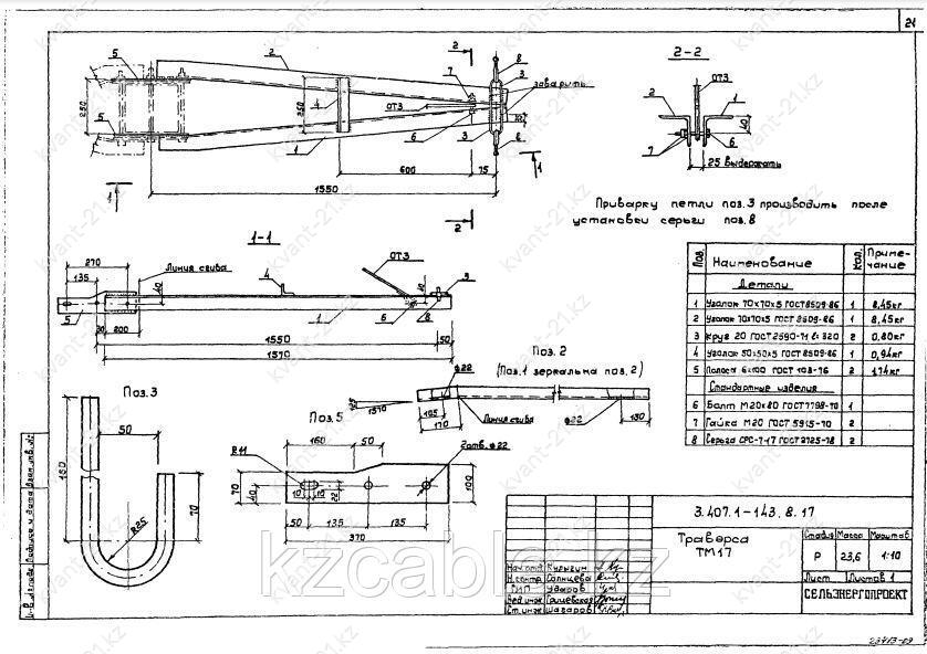 Требуемое крепление траверсы ТМ-17 к стойке СВ110 осуществляется хомутом марки Х-42, а крепления к стойке СВ105 – хомутом марки Х-1. В комплект к траверсам ТМ-17 данные хомуты не входят, заказ производится отдельно.