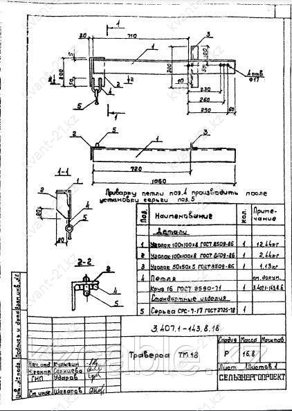 | 2 | Уголок 100х100х8 ГОСТ 8509--86 | 1 | |