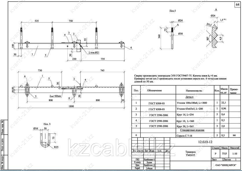 Траверса ТМ-2005 выпускается в соответствии с типовым проектом 12.020 (12.020-12).