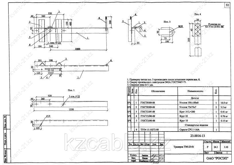 Траверса ТМ-23-01 выпускается в соответствии с типовым проектом 23.0016 (23.0016-13).