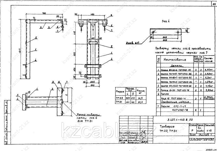 Траверсы ТМ-31 (проект 3.407.1-143.8.22) применяются при прокладке высоковольтных воздушных линий напряжением 10 кВ для крепления провода на опоре.