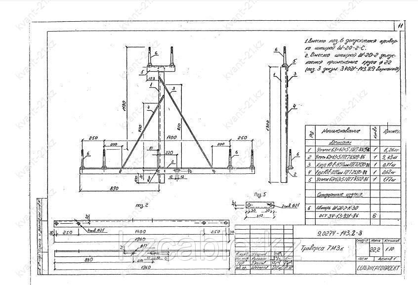 Траверса ТМ-3к выпускается в соответствии с типовым проектом арх. №9.0274 (9.0274-143.2-8).