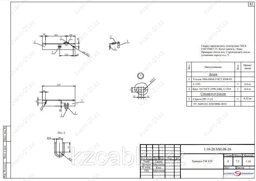 Траверса ТМ-42И выпускается в соответствии с типовым проектом 1.10-20.МИ.08 (1.10-20.МИ.08-26).