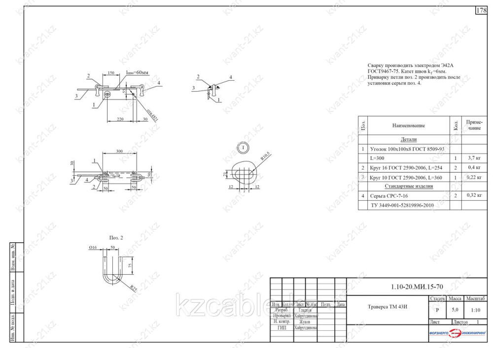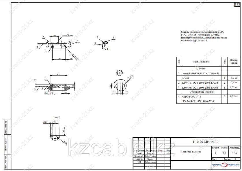 Траверса ТМ-43И выпускается в соответствии с типовым проектом 1.10-20.МИ.15 (1.10-20.МИ.15-70).