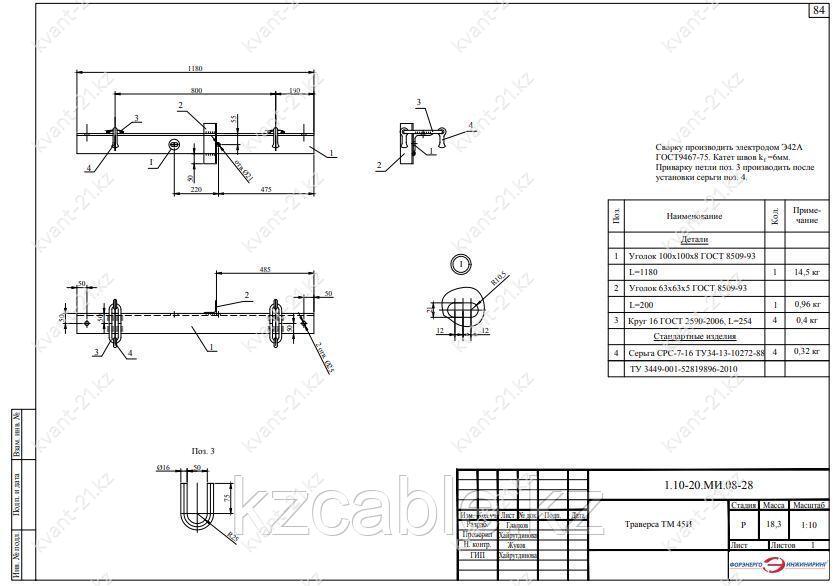 Траверса ТМ-45И выпускается в соответствии с типовым проектом 1.10-20.МИ.08 (1.10-20.МИ.08-28).