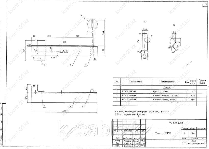 Траверса ТМ-501 выпускается в соответствии с типовым проектом 29.0008 (29.0008-07).