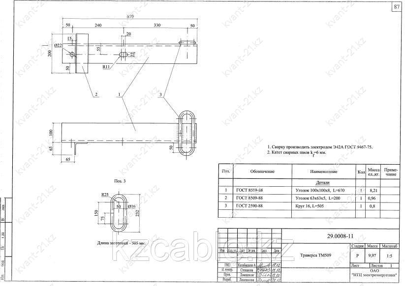 Траверса ТМ-509 выпускается в соответствии с типовым проектом 29.0008 (29.0008-11).