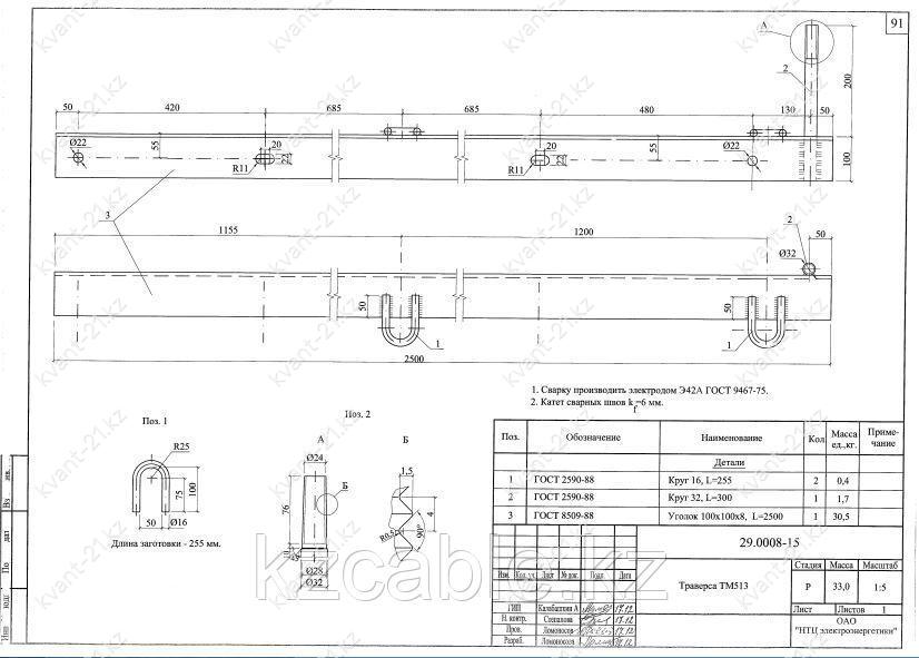 Траверса ТМ-513 выпускается в соответствии с типовым проектом 29.0008 (29.0008-15).