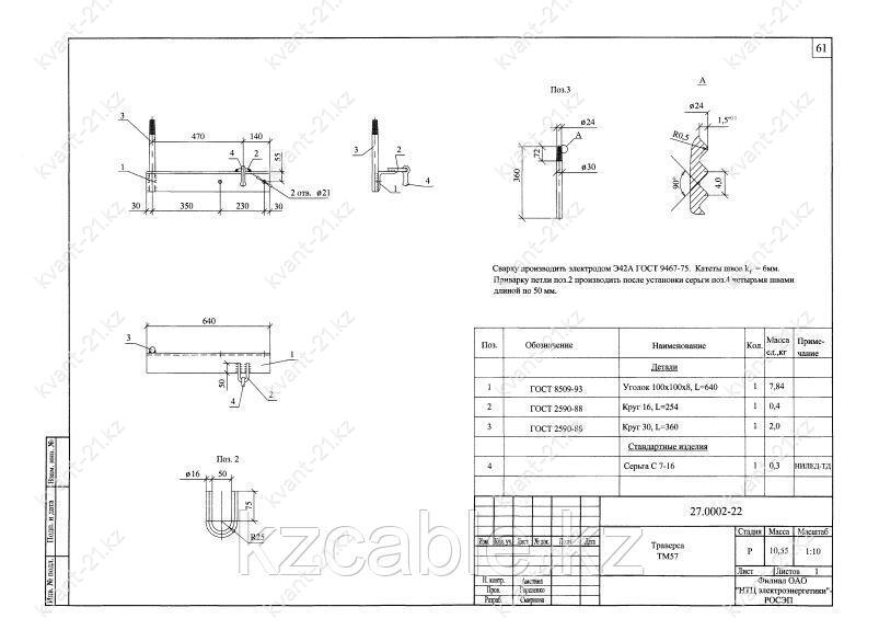 Траверса ТМ-57 выпускается в соответствии с типовым проектом 27.0002 (27.0002-22).