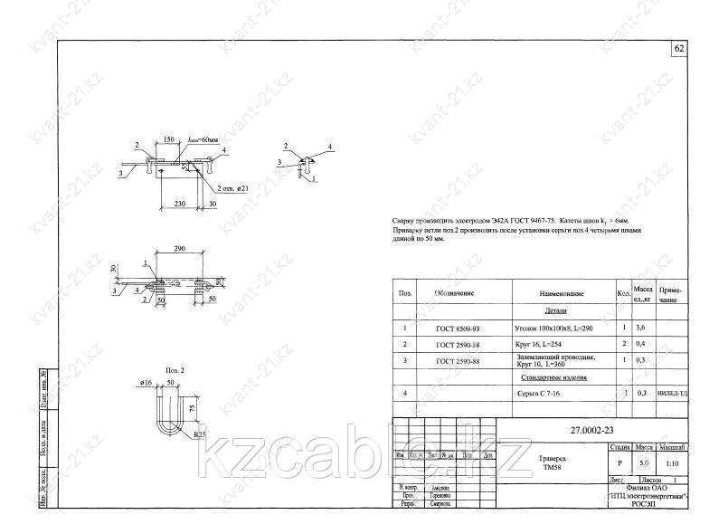 Траверса ТМ-58 выпускается в соответствии с типовым проектом 27.0002 (27.0002-23).