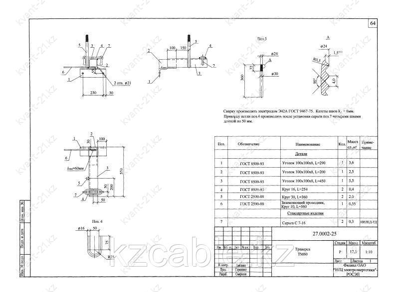 Траверса ТМ-60 выпускается в соответствии с типовым проектом 27.0002 (27.0002-25).