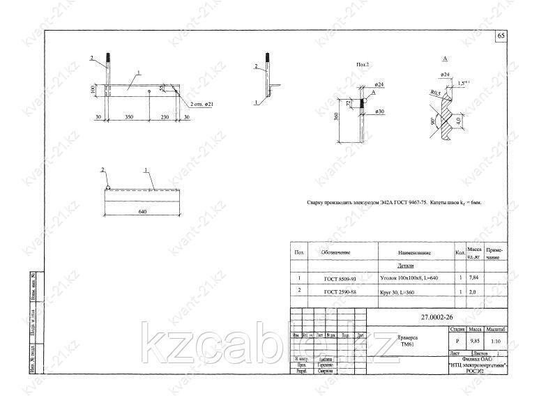 Траверса ТМ-61 выпускается в соответствии с типовым проектом 27.0002 (27.0002-26).