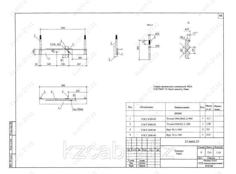 Траверса ТМ-62 выпускается в соответствии с типовым проектом 27.0002 (27.0002-27).