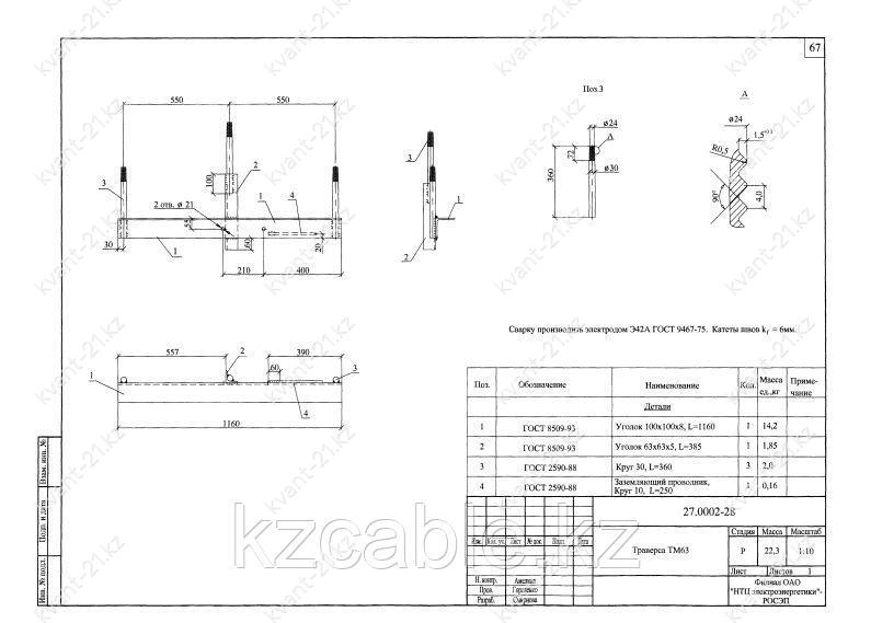 Траверса ТМ-63 выпускается в соответствии с типовым проектом 27.0002 (27.0002-28).