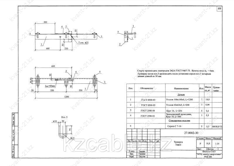 Траверса ТМ-65 выпускается в соответствии с типовым проектом 27.0002 (27.0002-30).