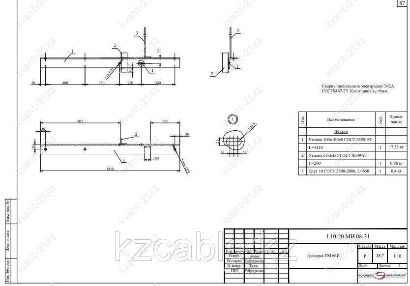 Траверса ТМ-66И выпускается в соответствии с типовым проектом 1.10-20.МИ.08 (1.10-20.МИ.08-31).