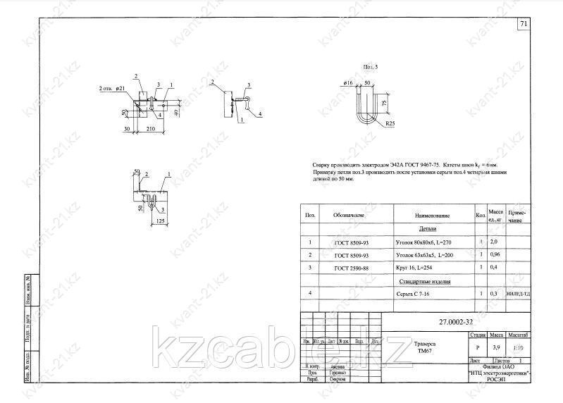 Траверса ТМ-67 выпускается в соответствии с типовым проектом 27.0002 (27.0002-32).