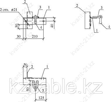 Отдельно от траверсы поставляются крепежные хомуты, необходимые для надежной фиксации траверсы на стойке. Хомут подбирается под марку применяемых в линии стоек. Например, хомутом Х-1 осуществляется крепление траверсы на стойке СВ105, а хомутом Х-42 - на стойке СВ110.