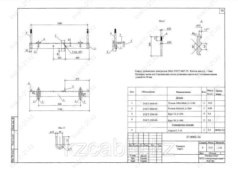 Траверса ТМ-71 выпускается в соответствии с типовым проектом 27.0002 (27.0002-36).
