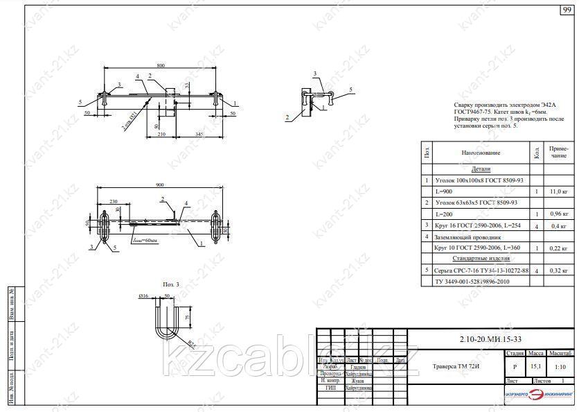 Траверса ТМ-72И выпускается в соответствии с типовым проектом 2.10-20.МИ.15 (2.10-20.МИ.15-33).
