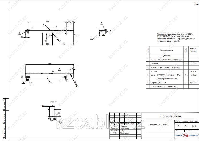 Траверса ТМ-72ИУ1 выпускается в соответствии с типовым проектом 2.10-20.МИ.15 (2.10-20.МИ.15-36).