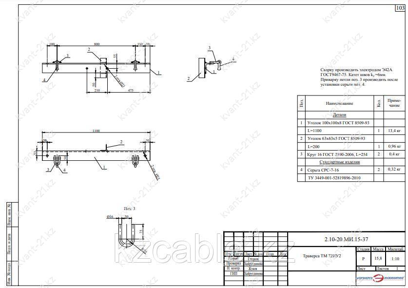 Траверса ТМ-72ИУ2 выпускается в соответствии с типовым проектом 2.10-20.МИ.15 (2.10-20.МИ.15-37).