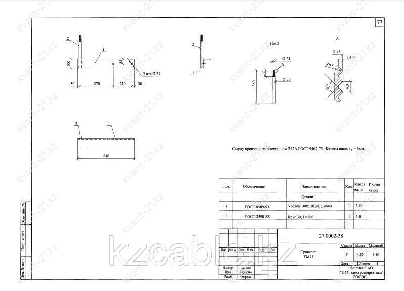 Траверса ТМ-73 выпускается в соответствии с типовым проектом 27.0002 (27.0002-38).