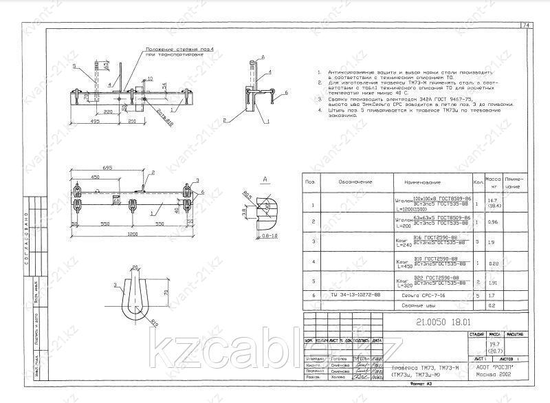 Траверса ТМ-73ш, ТМ-73шМ выпускается в соответствии с типовым проектом 21.0050 (21.0050 18.01).