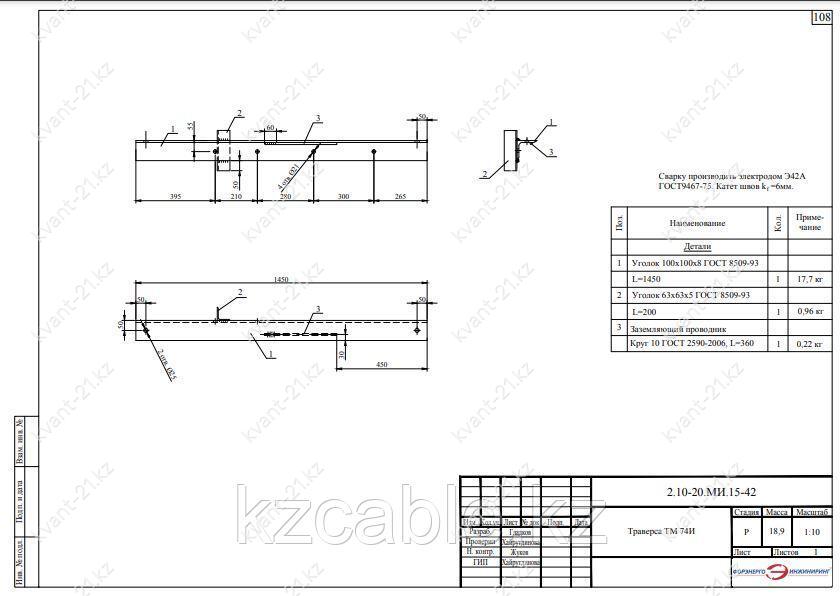 Траверса ТМ-74И выпускается в соответствии с типовым проектом 2.10-20.МИ.15 (2.10-20.МИ.15-42).