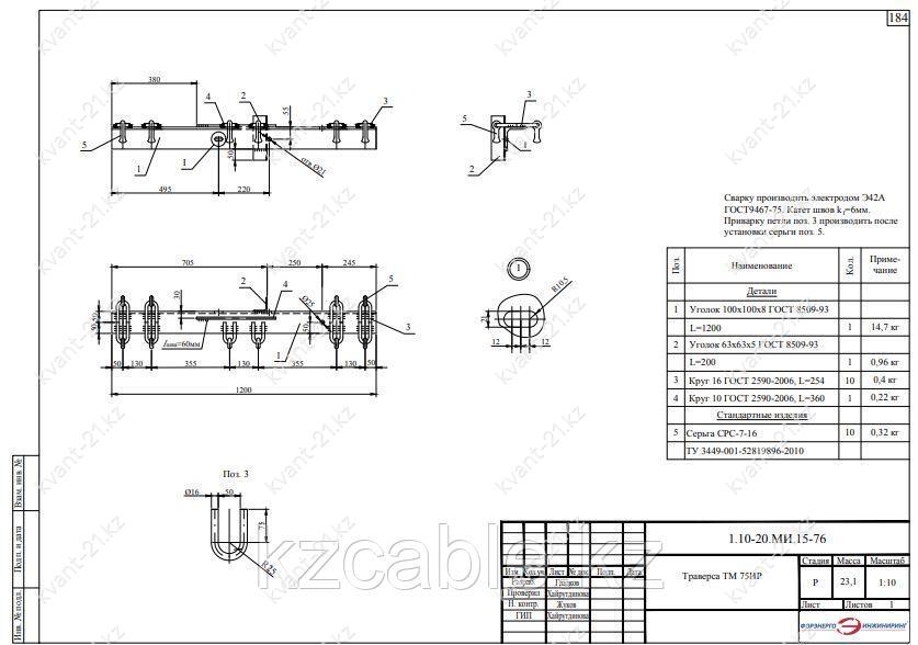 Траверса ТМ-75ИР выпускается в соответствии с типовым проектом 1.10-20.МИ.15 (1.10-20.МИ.15-76).