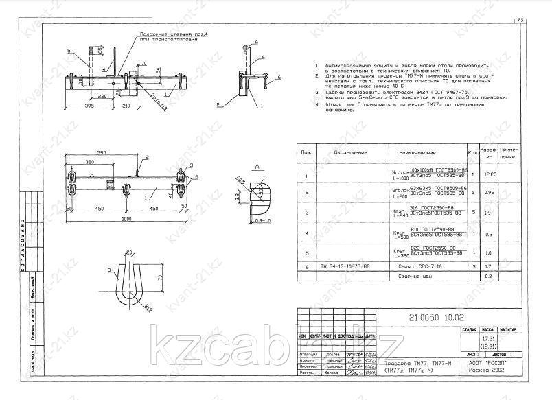 Траверса ТМ-77ш, ТМ-77шМ выпускается в соответствии с типовым проектом 21.0050 (21.0050 10.02).