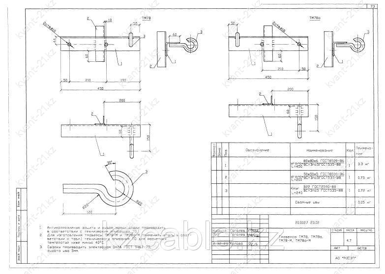 Траверсы ТМ-78, ТМ-78а, ТМ-78М, ТМ-78аМ выпускаются в соответствии с типовым проектом 20.0027 (20.0027 23.02).