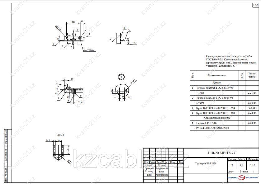 Траверса ТМ-85И выпускается в соответствии с типовым проектом 1.10-20.МИ.15 (1.10-20.МИ.15-77).