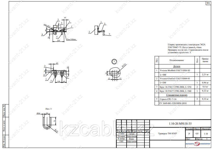 Траверса ТМ-85ИР выпускается в соответствии с типовым проектом 1.10-20.МИ.08 (1.10-20.МИ.08-35).