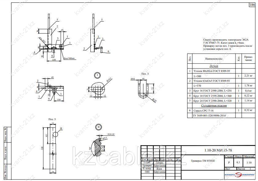 Траверса ТМ-85ИШ выпускается в соответствии с типовым проектом 1.10-20.МИ.15 (1.10-20.МИ.15-78).