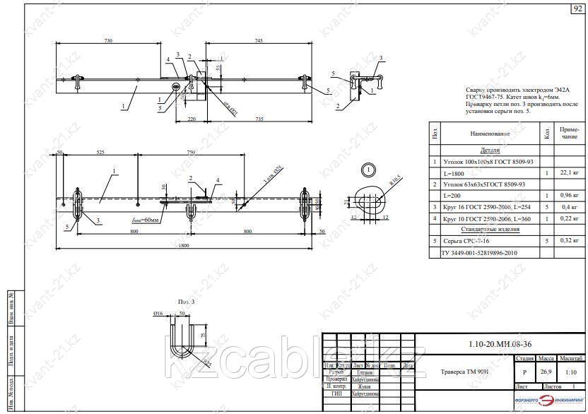 Траверса ТМ-90И выпускается в соответствии с типовым проектом 1.10-20.МИ.08 (1.10-20.МИ.08-36).